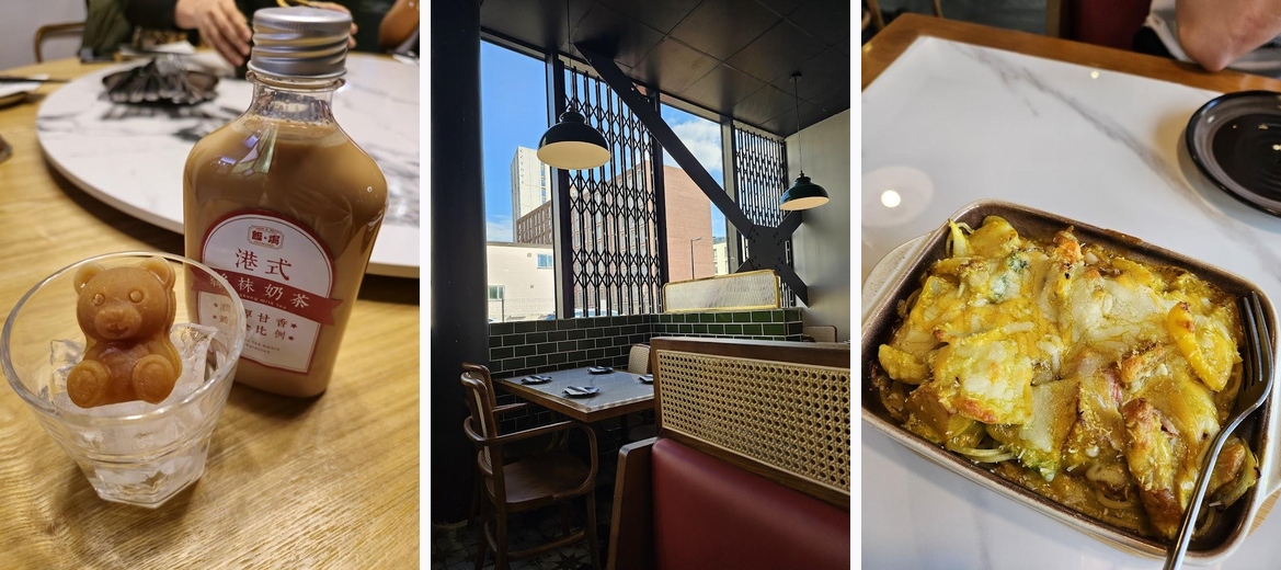 This lovely restaurant definitely serves some of the most delicious comfort food that I’ve had the chance to enjoy recently. Pan Asian food with a very authentic Cantonese menu; serving Milk tea, Clay pot rice, Wok-fried dishes, Cantonese street food, BBQ meats and more. Based on Milton Street just down from Devonshire Green on the outskirts of Sheffield City Centre, there is plenty of street parking nearby. I decided to take a group of foodie friends, and we were given the “spinny table” in a little secluded area of the restaurant, it was really lovely. Every one of us were really impressed with every single dish that came out, it was an absolute feast. We were even brave to try the Fish balls, which most of us had never had before, they were definitely a different texture to a lot of food out there, but we liked them! You have it on 5 food blogger’s authority that this Asian restaurant is well worth a visit. Our feast included; 🥢Steamed Rice Rolls in Sesame Sauce (Vegan) 🥢Fish balls in curry sauce – an iconic must-have Hong Kong Kong street food 🥢Spicy Siu Mai (pork & shrimp dumplings) – street food traditionally steamed but these were also fried, adding a lovely crispy outer layer with a drizzle of crispy chilli oil on top 🥢Clay Pot Rice (with chicken and Chinese sausage) 🥢Baked Fried Rice (with chicken curry & coconut) *one of our faves* – a popular lunchtime meal in Hong Kong 🥢BBQ Pork & Duck (Char Siu) 🥢Beef Ho Fun AND Vegan Option Ho Fun (stir fried rice noodles that have the char from the wok, cooked with beans sprouts, spring onion and onion) – A very “traditional” cha chaan teng/ Hong Kong cafe menu item 🥢Malaysian Beef Curry Stew – a very warming and tasty dish *another favourite* 🥢Pumpkin Croquettes (Vegan) 🥢Black Pepper Beef Spaghetti – NOT NOODLES! *one of my favourite dishes, I took the leftovers home!* 💷 Spend: £20 – £40pp ⏰ Open Hours:12 – 9pm daily 🚗 Parking info: Close by on-street parking & car parks 📦🚚 Takeaway/Delivery: UberEats & collection